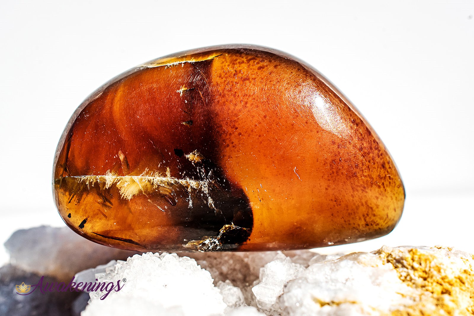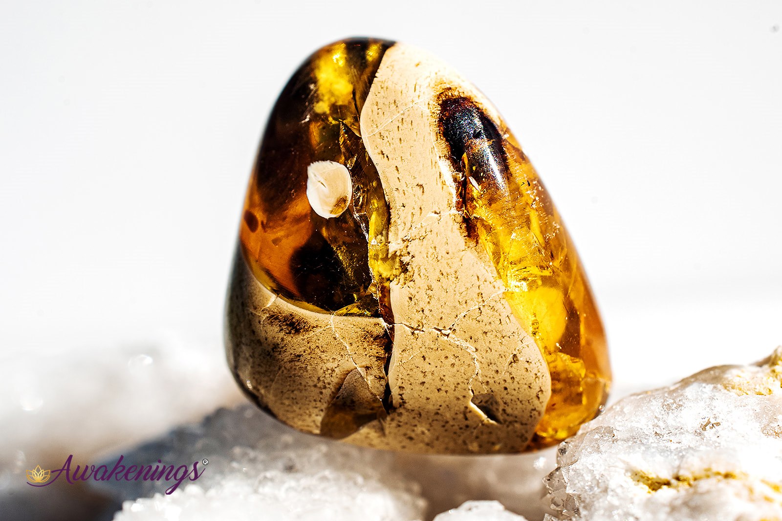 Blue Amber is associated with the Solar Plexus and Third Eye chakras.