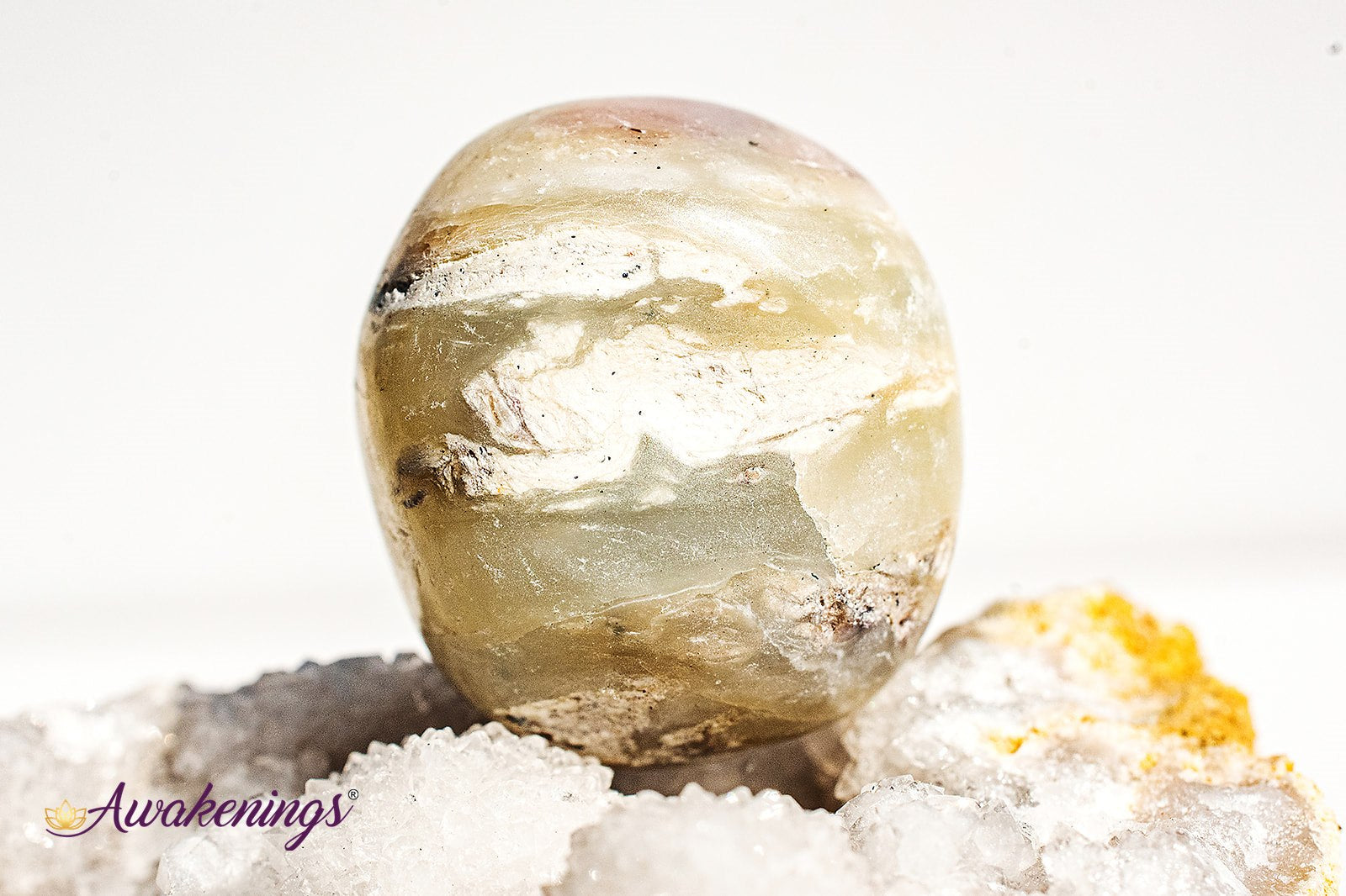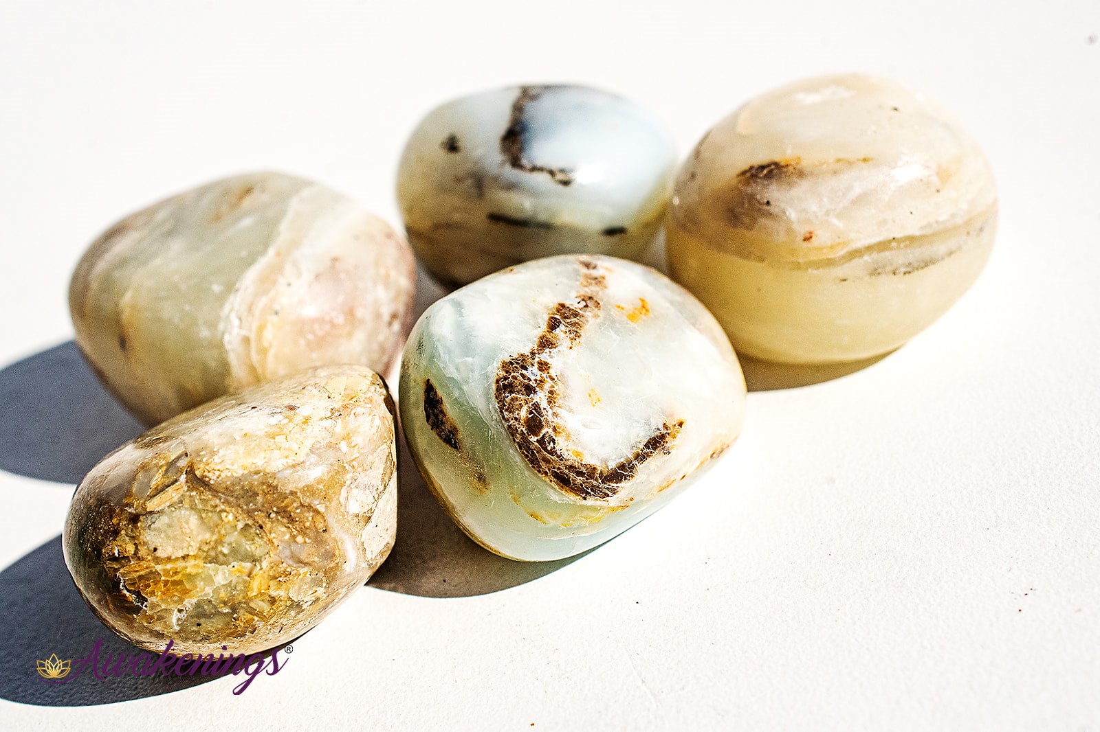 Blue Opal is associated with the Throat and Throat Eye chakras.