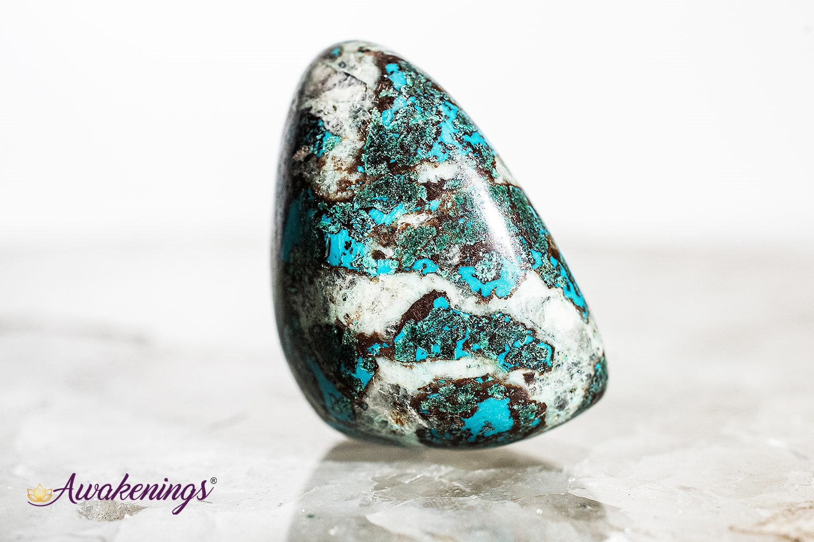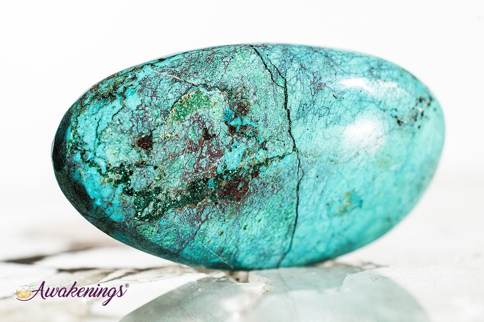 Chrysocolla is associated with the Throat & Heart chakras. The benefits of the stone include
