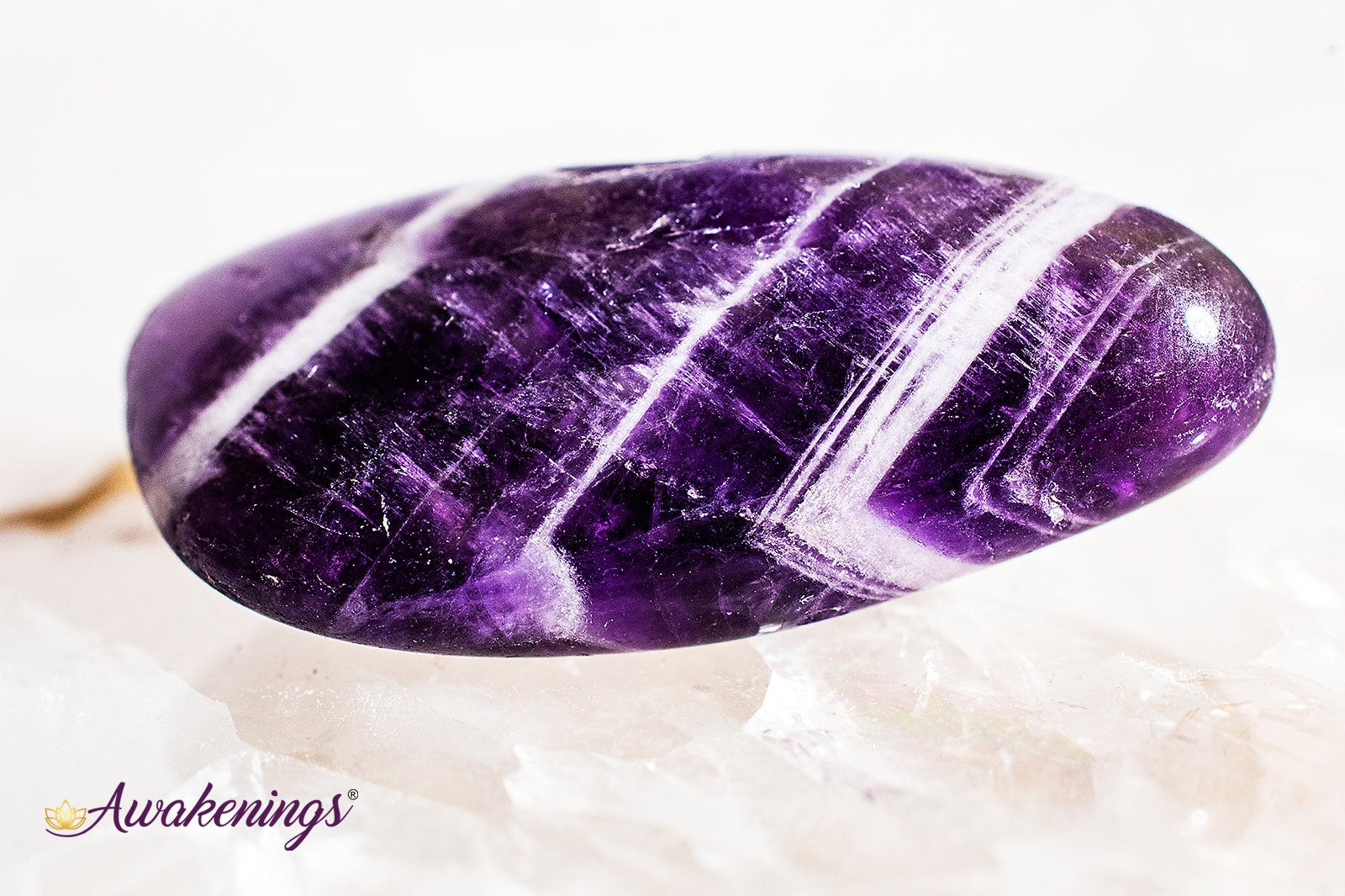 Chevron Amethyst is associated with Third Eye and Crown chakras. Benefits of the stone include: