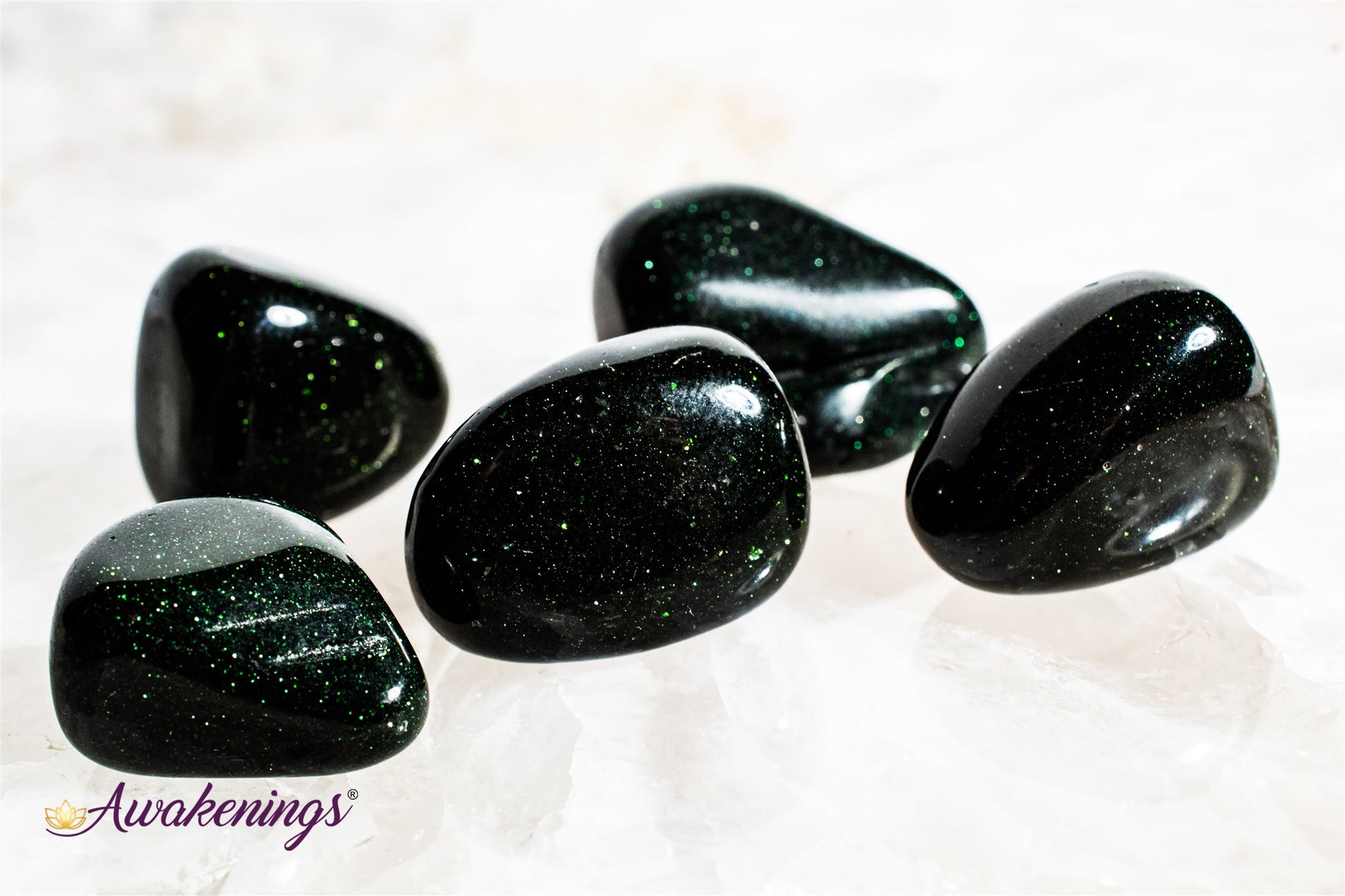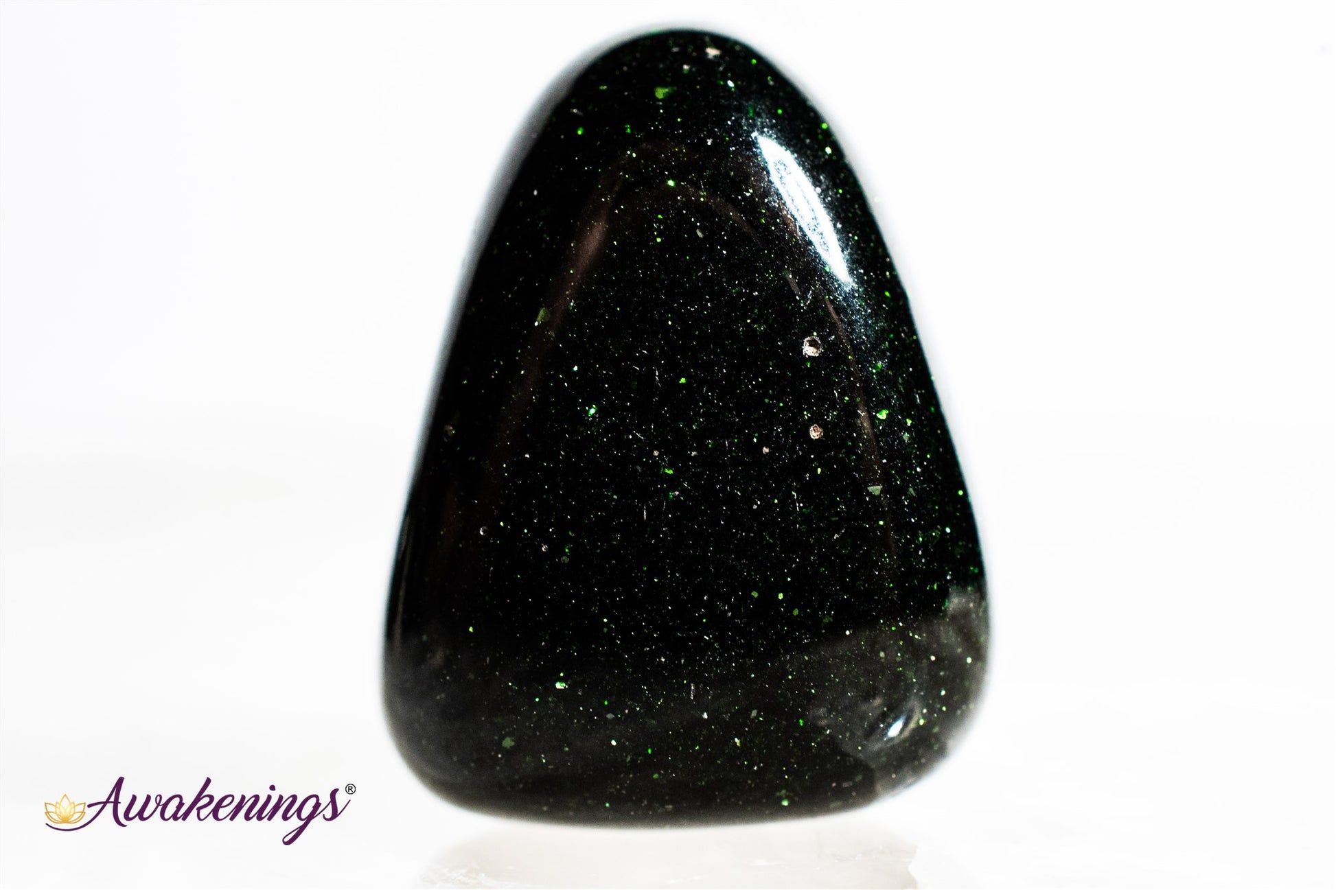 Green Goldstone is associated with the Heart and Third Eye chakras.