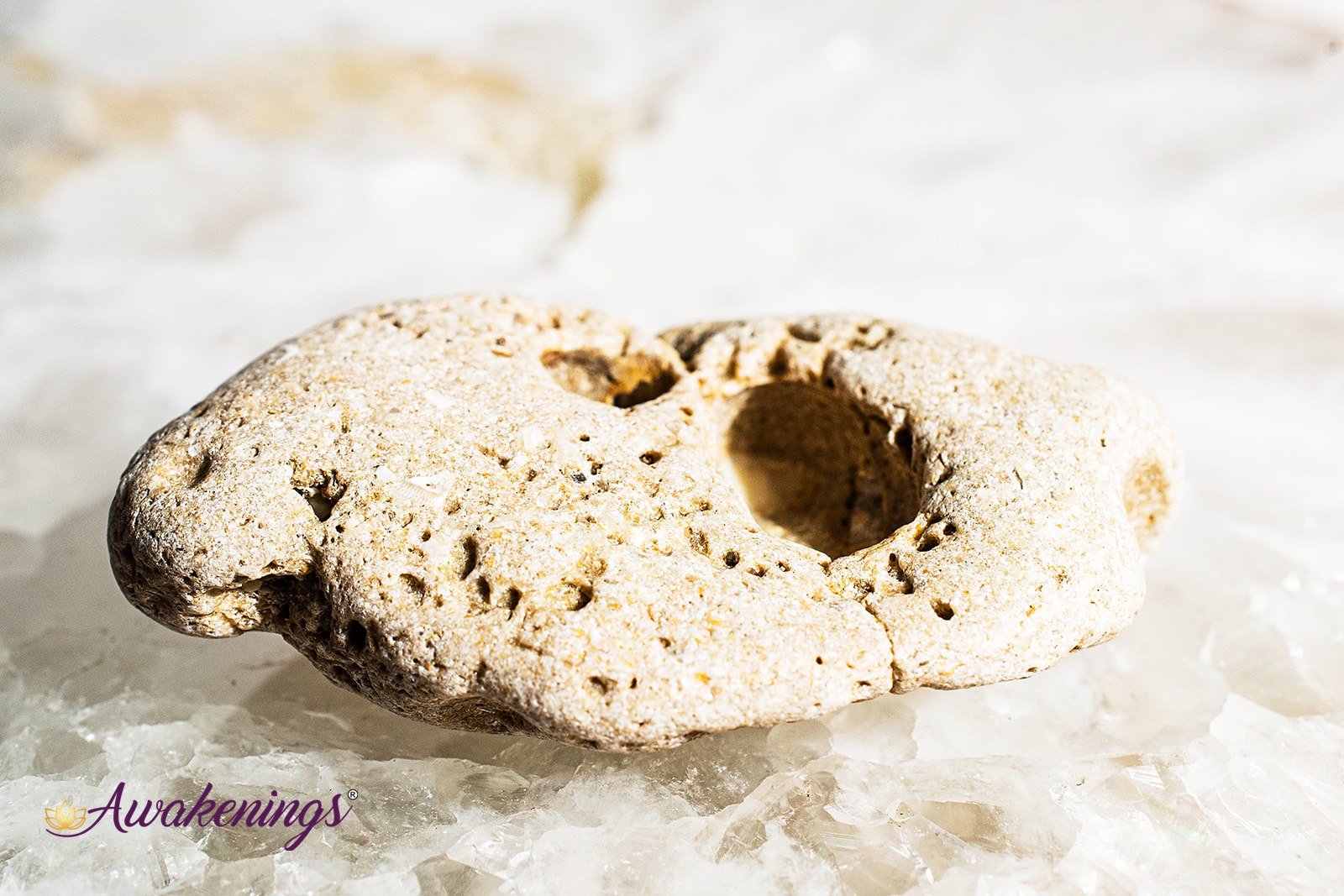 Hag Stones (also known as Holy Stone or Witches Stone) are associated with the Root and Third Eye chakras.