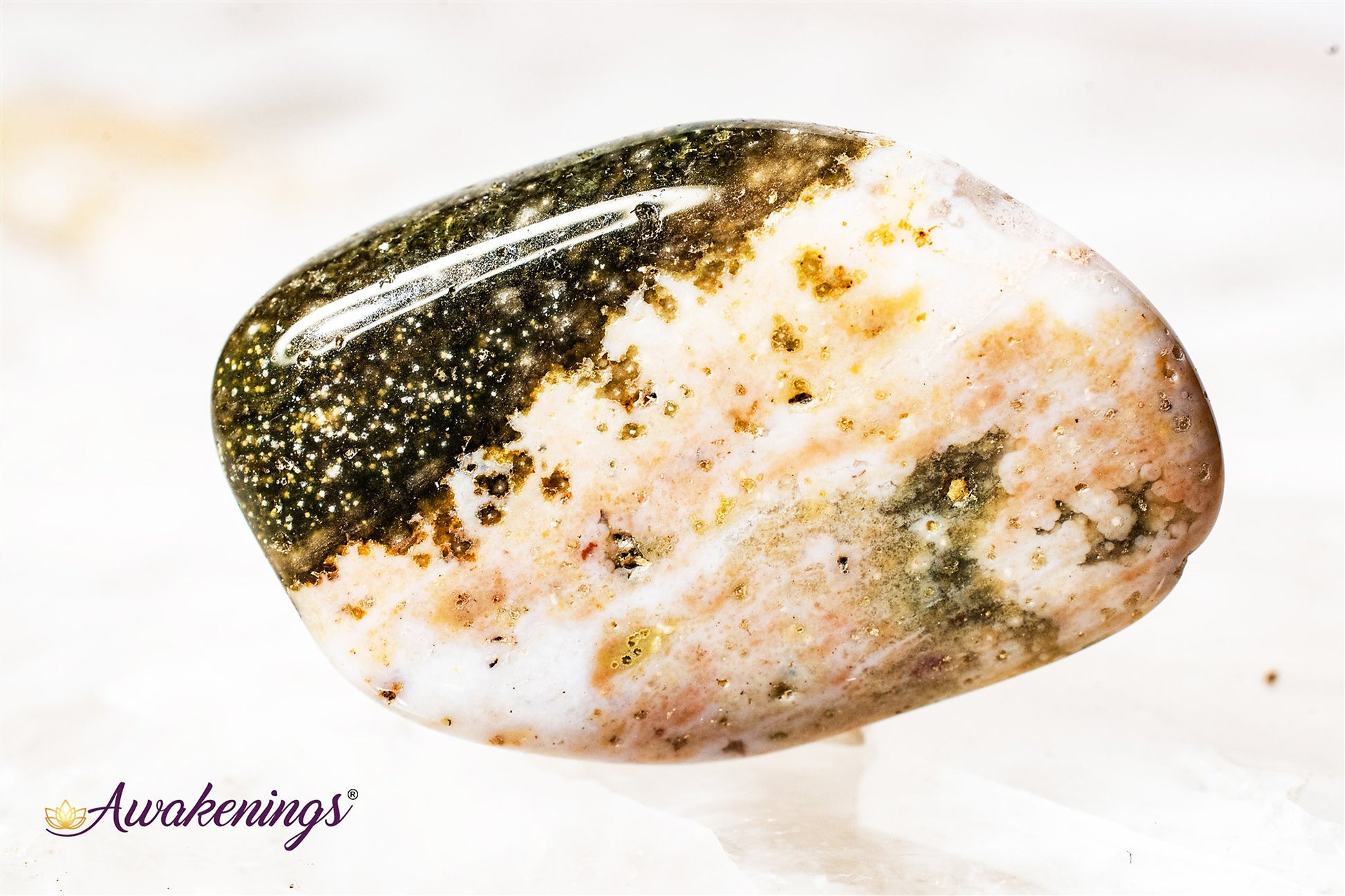 Ocean Jasper is a stone that works with the Throat and Heart Chakras.