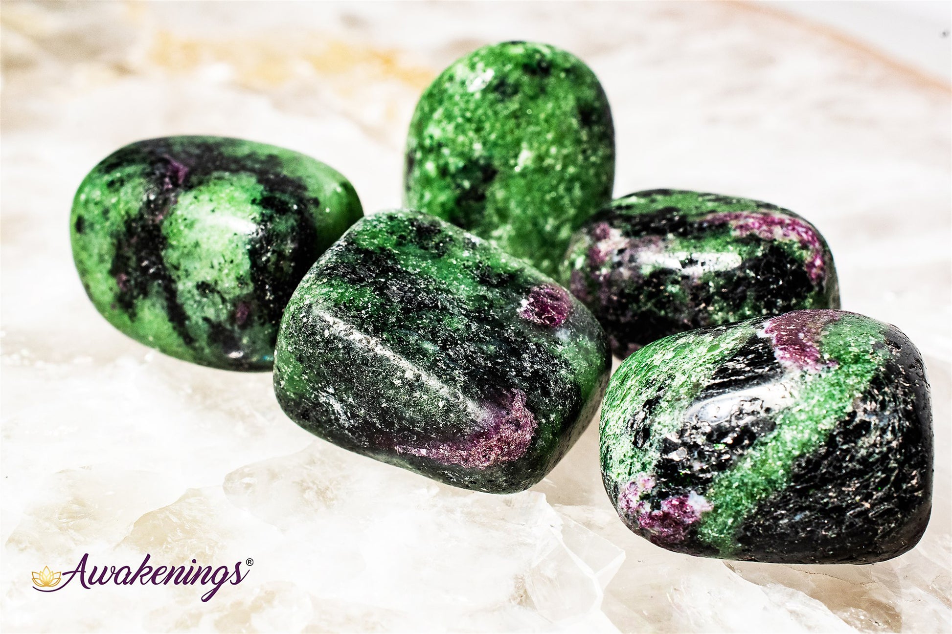 Ruby Zoisite is associated with the Heart & Crown Chakra.