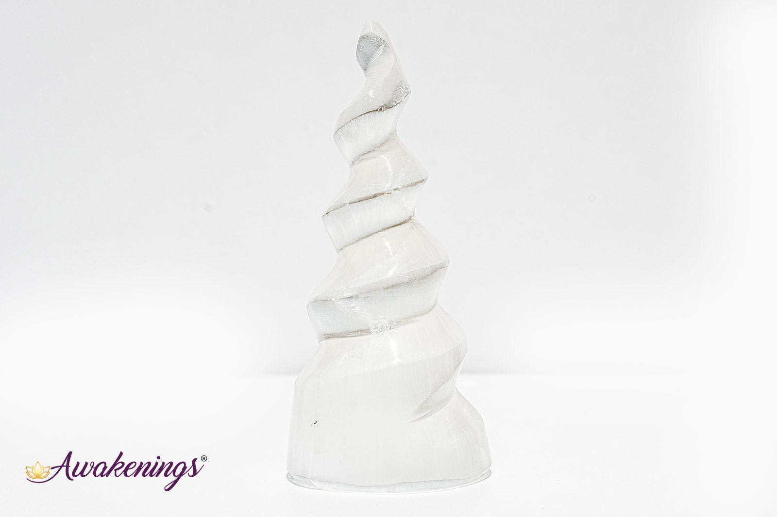 Selenite (also known as Satin Spar or Gypsum) is associated with the Third Eye & Crown chakras.