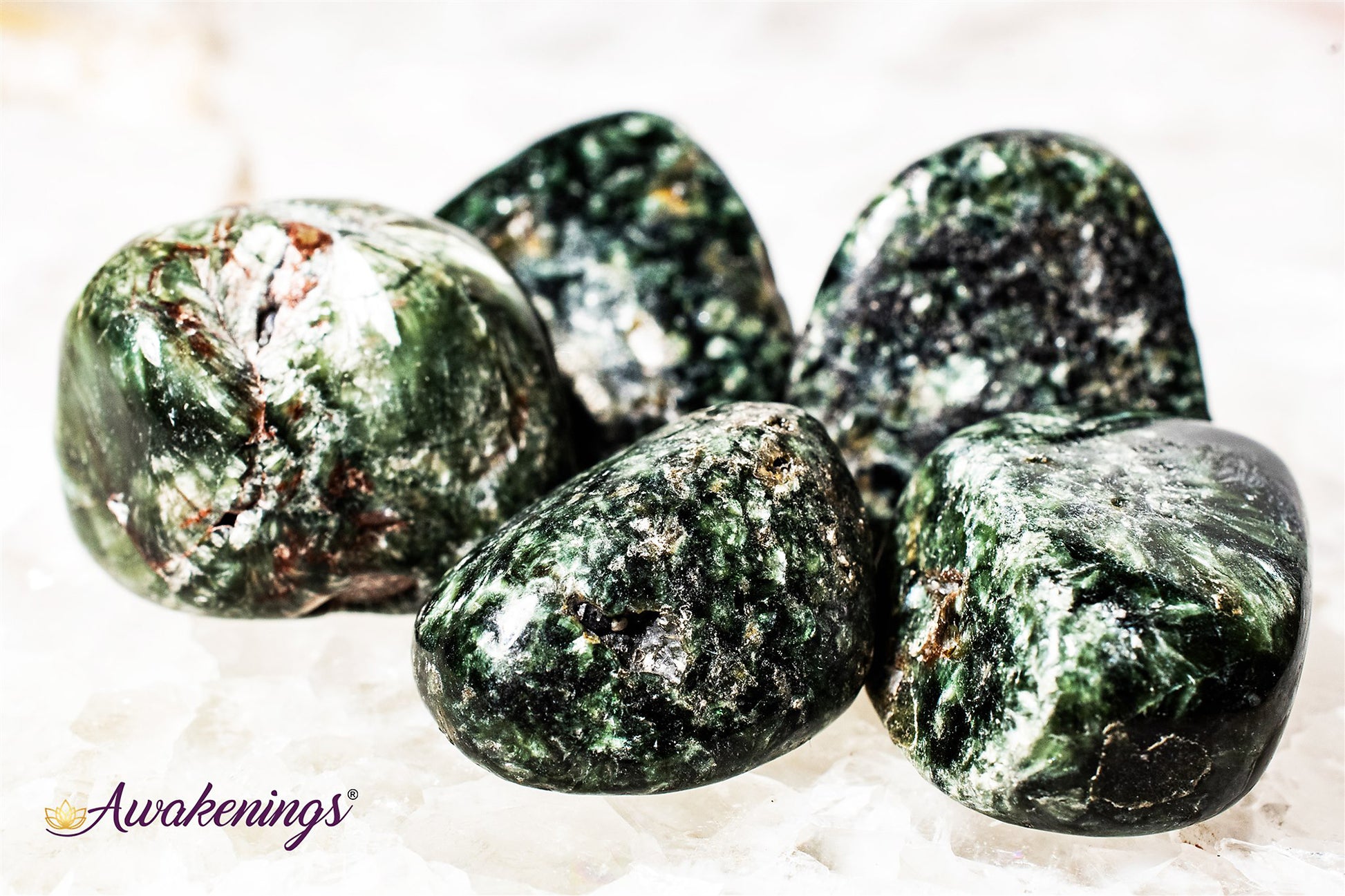 Our Tumbled Seraphinite is a stunning crystal renowned for its angelic energy and transformative properties. With its deep green hues and shimmering silvery patterns, Seraphinite is celebrated for promoting spiritual growth, emotional healing, and a profound connection to higher consciousness. Perfect for meditation, energy work, or carrying as a talisman, it inspires self-awareness, compassion, and inner peace.