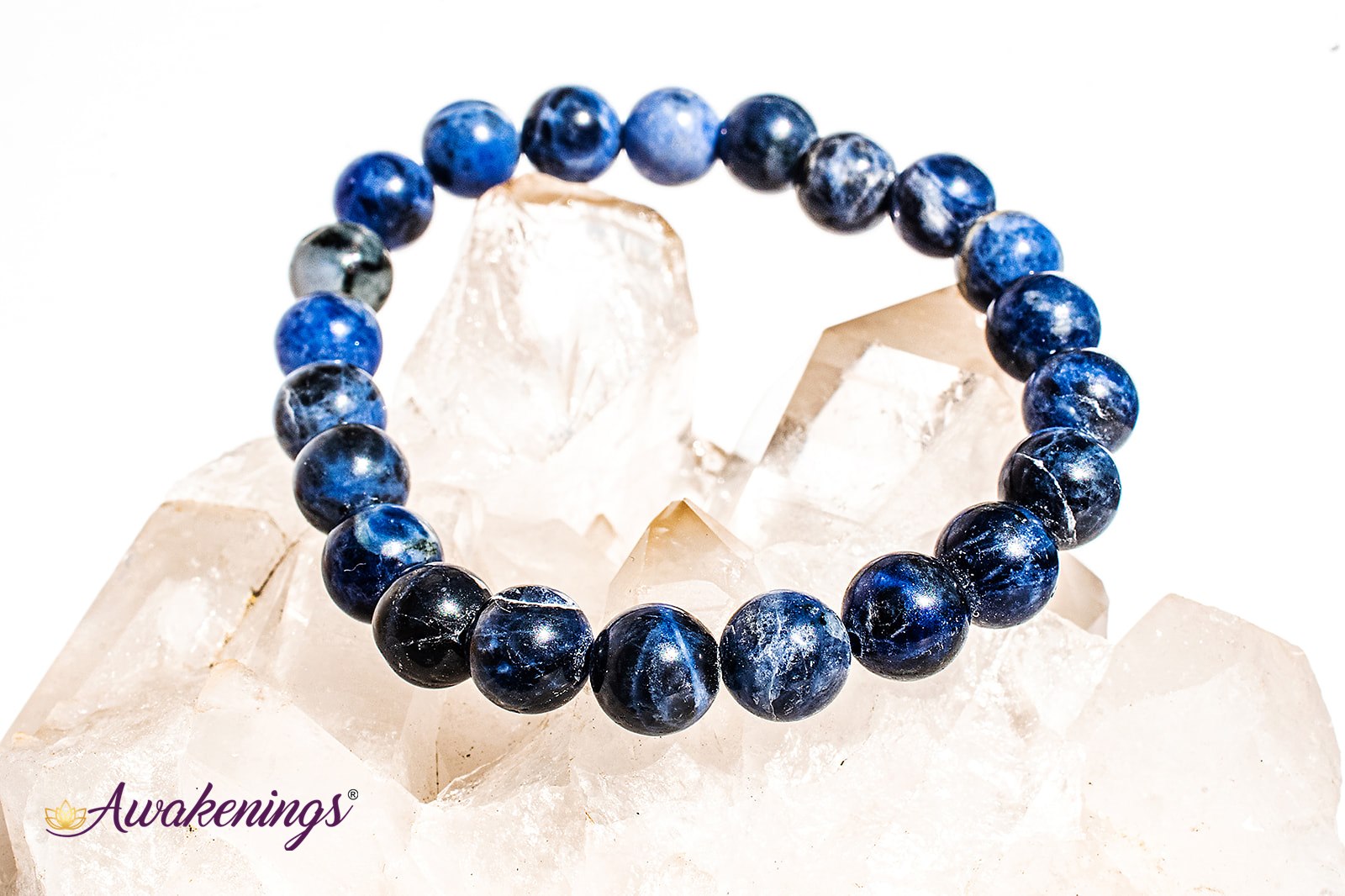 Sodalite is associated with the Throat & Third Eye chakras.